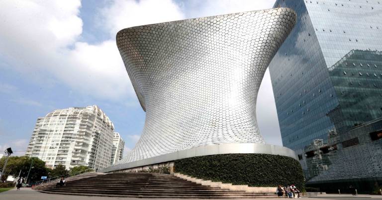 La construcción del Museo Soumaya estuvo a cargo del despacho FR-EE del arquitecto Fernando Romero. La estructura se diseñó asimétricamente, formada por más de 16 000 hexágonos de aluminio unidos entre sí, que reflejan la luz del sol de manera diferente a lo largo del día, creando un efecto visual impresionante.
